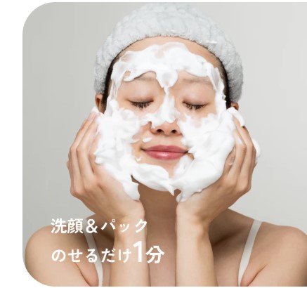 使用方法は、泡を手に取り顔にのせ、やさしく広げて30秒〜1分置いてから洗い流すだけ。